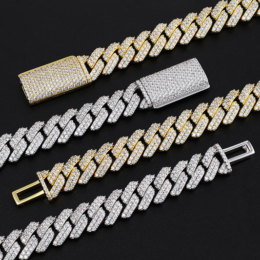 925S & VVS Moissanite 15MM Prong Cuban Link Chain