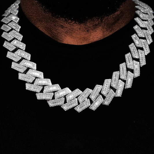 925S & VVS Moissanite 18MM BlingBling Baguette Iced Cuban Chain