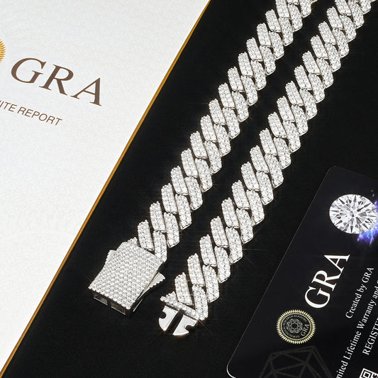 S925 & VVS Moissanite 12MM Prong Cuban Link Chain